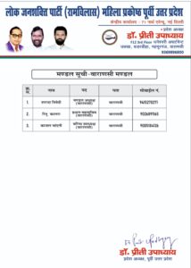 *डॉ प्रीति उपाध्याय प्रदेश अध्यक्ष लोक जनशक्ति पार्टी* *रामविलास महिला पूर्वी उत्तर*
