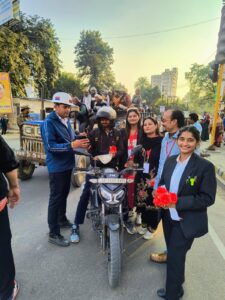 आरटीएम सोसाइटी फॉर सोशल डेवलपमेंट ने चलाया सड़क सुरक्षा जागरूकता अभियान, राहगीरों को फूल देकर किया सम्मानित