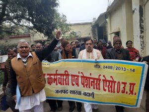बदायूं।सेवानिवृत्त कर्मचारी एवं पेन्शनर्स ऐसोसियेशन जनपद की शाखा के नेतृत्व में कोषागार के पेन्शनर्स भवन पर प्रातः 10-30 बजे बहुतायत की संख्या में पेन्शनर्स इकट्ठे हुए।