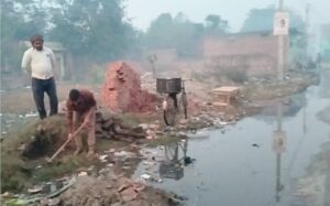 सड़क के गड्ढों में भरा नालियों का पानी, हर कदम पर आवागमन में हो रही परेशानी।