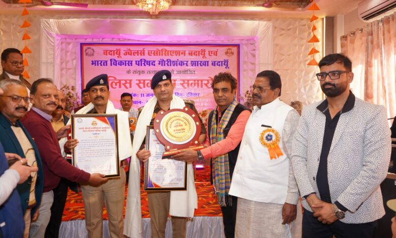 बदायूं।शहर के राजमहल गार्डन में ज्वेलर्स एसोसिएशन एवं भारत विकास परिषद द्वारा पुलिस सम्मान समारोह का कार्यक्रम आयोजित।