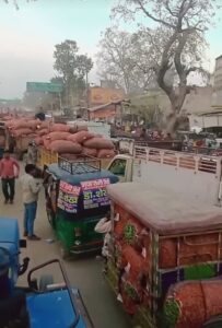 कुंवर गांव में लग रही हरी मटर की अवैध मंडी शाम को चारों तरफ रास्ते हो जाते हैं जाम