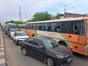 बदायूं। कस्बा बिनावर में राम नवमी के पावन अवसर पर एक ओर लोग भक्तिभाव में लीन थे, वहीं कस्बे की पुलिस की भारी लापरवाही के चलते आम जनता को भारी मुसीबत का सामना करना पड़ा। बरेली-बदायूं हाईवे पर अचानक लगे लगभग 2 किलोमीटर लंबे जाम ने यातायात व्यवस्था की पोल खोलकर रख दी।