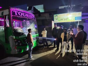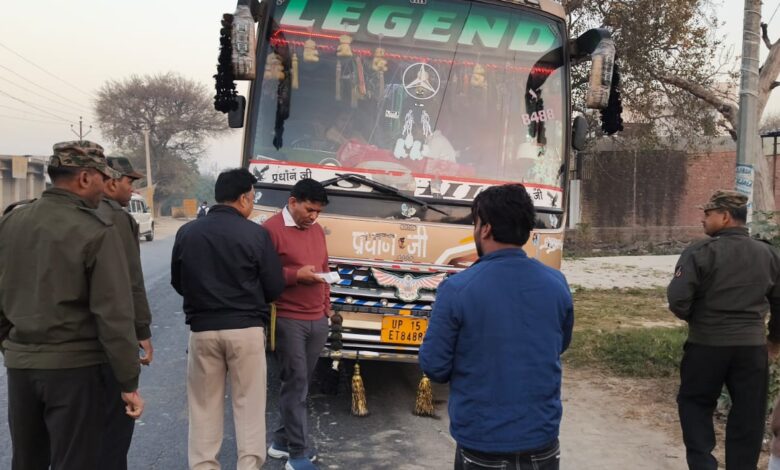 बदायूं। सड़क सुरक्षा के दृष्टिगत उत्तर प्रदेश शासन एवं जिलाधिकारी के निर्देशन में सहायक संभागीय परिवहन अधिकारी (प्रवर्तन/प्रशासन) हरिओम द्वारा होली के पर्व पर अनियमिताओं में संलिप्त सवारी बसों,अवैध खनन एवं ओवरलोड वाहनों के विरुद्ध कार्यवाही करते हुए 8 वाहनों को थाना फैजगंज एवं बिसौली में किया गया सीज तथा 01स्लीपर बस जो मानक के अनुरूप नहीं थी उसको परिवहन निगम की वर्कशॉप में सीज किया गया साथ ही मनको का पालन नहीं करने पर दो बसों के चालान किए गए। इसी के साथ-साथ 18 दो पहिया वाहन बिना हेलमेट, एच.एस.आर.पी एवं गलत दिशा में वाहन चलाने के अभियोग में आसफपुर चौकी के पास चालान किए, एक चालान नशे की हालत में वाहन चलाने पर किया गया, हरिओम द्वारा लगातार जनपद में संचालित एवं जनपद से गुजरने वाले ओवरलोड वाहनों अवैध खनन एवं डग्गामार यात्री वाहनों के विरुद्ध लगातार प्रवर्तन की जा रही है, होली के पर्व पर जन सामान्य से अपील की जाती है कि नशे की हालत एवं तीव्र गति से वाहन ना चलाएं यातायात के नियमों का पालन करें,