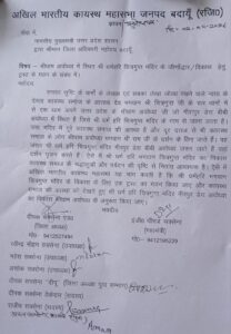 बदायूं,। अखिल भारतीय कायस्थ महासभा, बदायूं द्वारा अयोध्या स्थित श्री धर्महरि चित्रगुप्त मंदिर के जीर्णोद्धार एवं विकास हेतु ट्रस्ट गठन की मांग को लेकर मुख्यमंत्री को संबोधित ज्ञापन जिला अधिकारी के माध्यम से सौंपा गया।