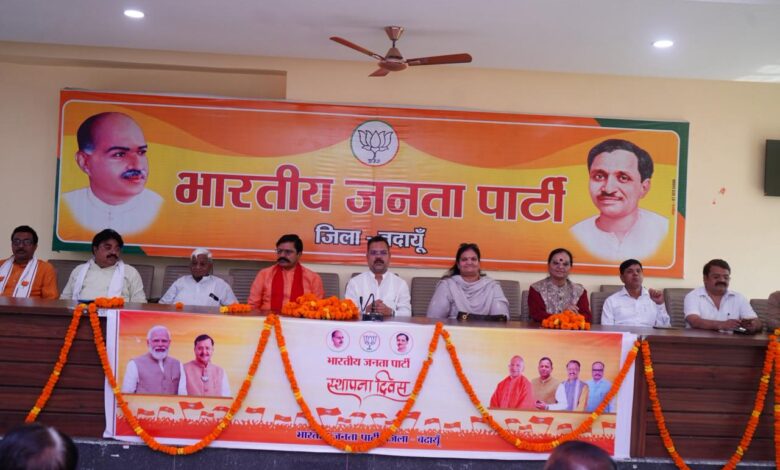 बदायूँ :- भाजपा के 47वें स्थापना दिवस के अवसर पर जिला भाजपा कार्यालय में भव्य एवं उत्साहपूर्ण कार्यक्रम में जिलाध्यक्ष राजीव कुमार गुप्ता, सदर विधायक महेश चंद्र गुप्ता, जिला पंचायत अध्यक्ष वर्षा यादव, पूर्व विधायक धर्मेंद्र शाक्य जनप्रतिनिधियों एवं पार्टी पदाधिकारियों ने ध्वजारोहण कर आयोजित जिला संगोष्ठी में संबोधित किया। वहीं जनपद के सभी मंडलों में भी पार्टी कार्यकर्ताओं ने मंडल कार्यालयों पर ध्वजारोहण किया तथा बूथों पर अपने-अपने घरों पर पार्टी का ध्वज लगाकर स्थापना दिवस को उत्साहपूर्वक मनाया।